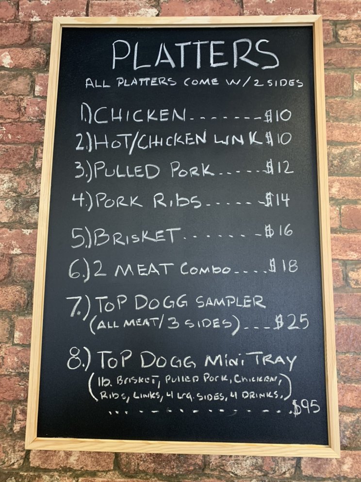 Top Dogg BBQ SmokeHouse Menu
